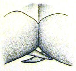 male, end of abdomen, posterior view, middle part more strongly enlarged (Niphetogryllacris beybienkoi)
