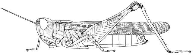 Source: Plate from Mestre. 1988. Les acridiens des formations herbeuses d'Afrique de l'Ouest 330 pp., Page 281, Figure 1.